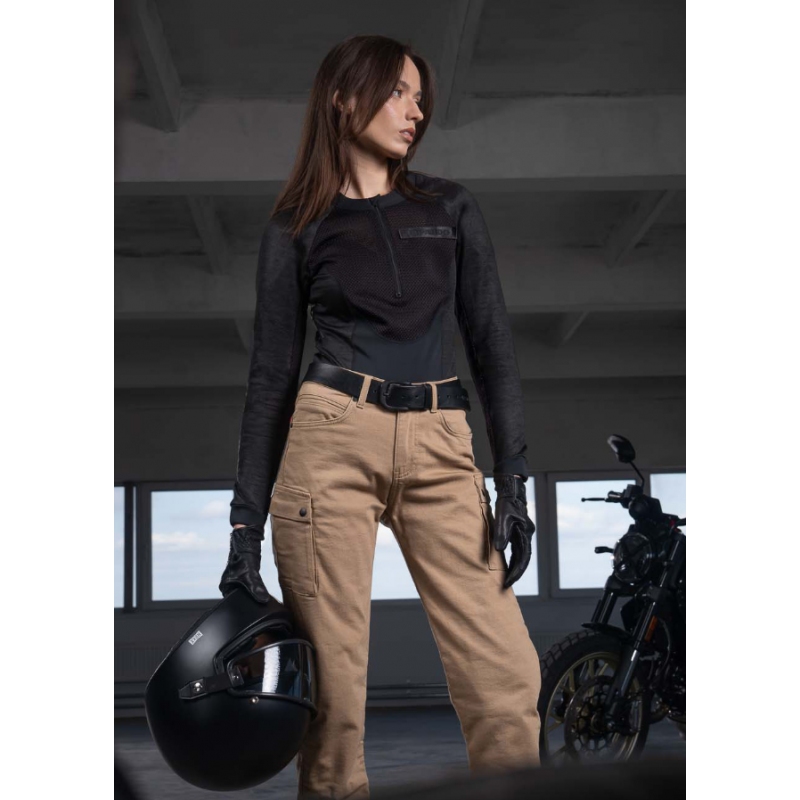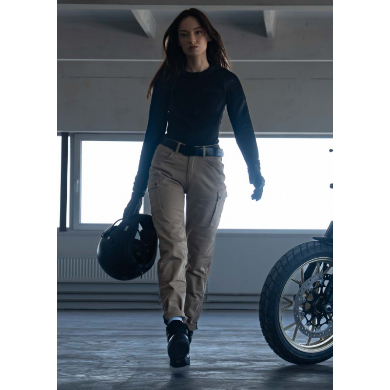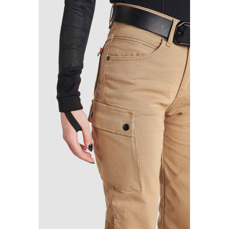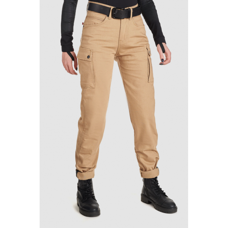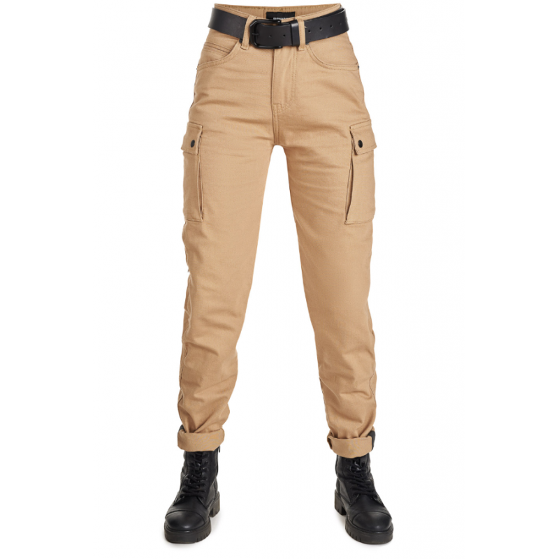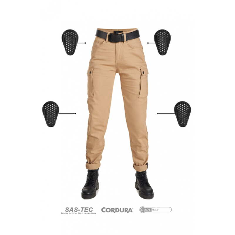 Дамски мото дънки PANDO MOTO MILA CARGO BEIGE - Chino Style Cordura® - LONG
