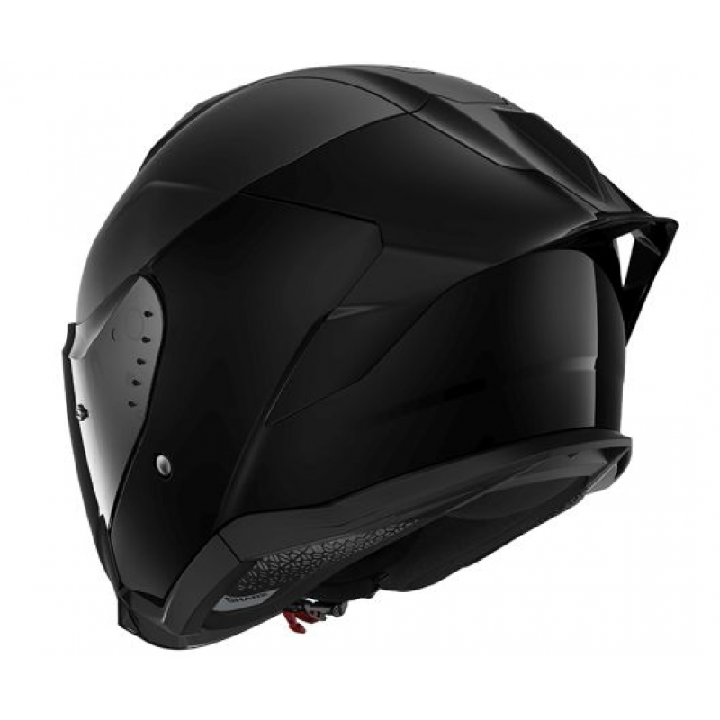 Характерният му заден спойлер, рядко срещан в тази категория, предлага истински контрол на въздушния поток и чисти състезателни линии, напомнящи каските, които се виждат на стартната решетка.