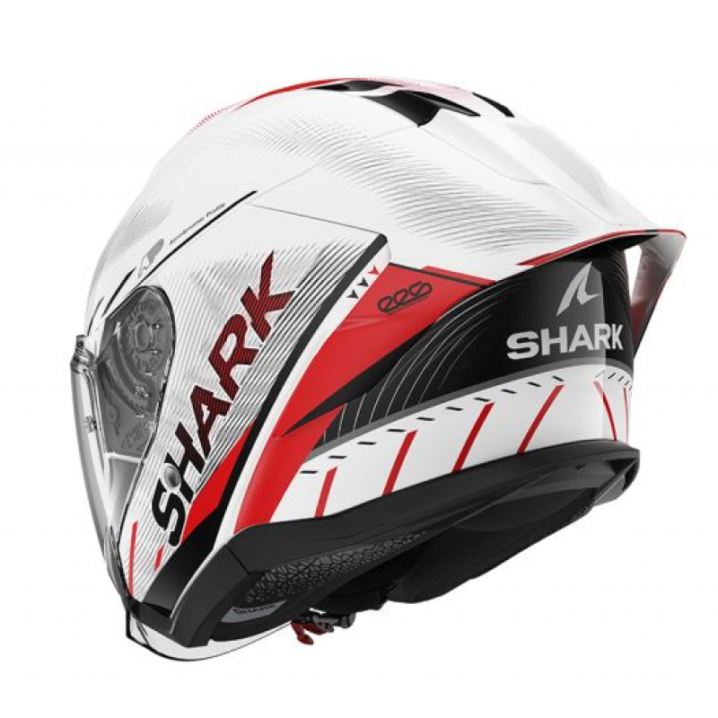 Характерният му заден спойлер, рядко срещан в тази категория, предлага истински контрол на въздушния поток и чисти състезателни линии, напомнящи каските, които се виждат на стартната решетка.