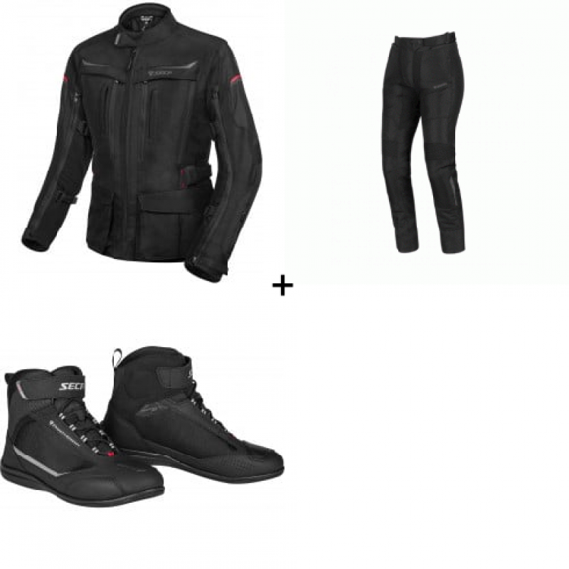 Дамско текстилно яке SECA DISCOVERY LADY BLACKХАРАКТЕРИСТИКИ:Издръжливи еластични протектори за лакти и рамене DuraTec® 600D Betac® Джоб, позволяващ поставянето на протектор за гръб D3O® Светлоотразители ReflexLite® Сваляща се мембрана InsiDry®, предназначена за използване отвътре и отвън на якето Отделяща се термоподплата Мека и дишаща подплата AirMesh MeshProtecto® вентилационни панели