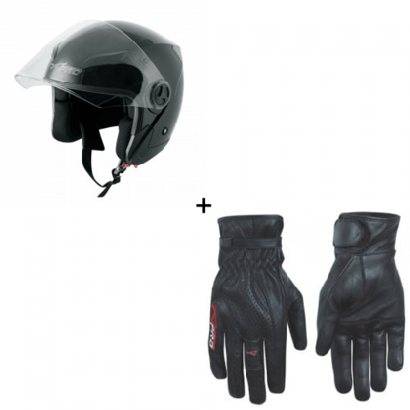 Комплект каска за скутер A-PRO ENGRAVE BLACK - 2 части
