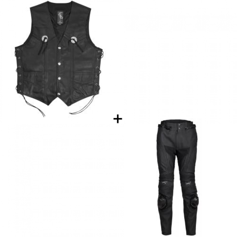 Комплект кожен мото елек A-PRO GAMBLER BLACK - 2 части