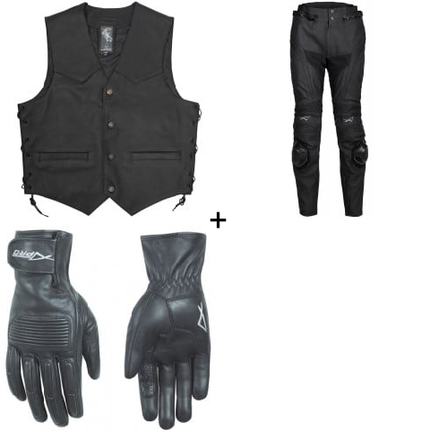 Комплект кожен мото елек A-PRO WILD BLACK - 3 части