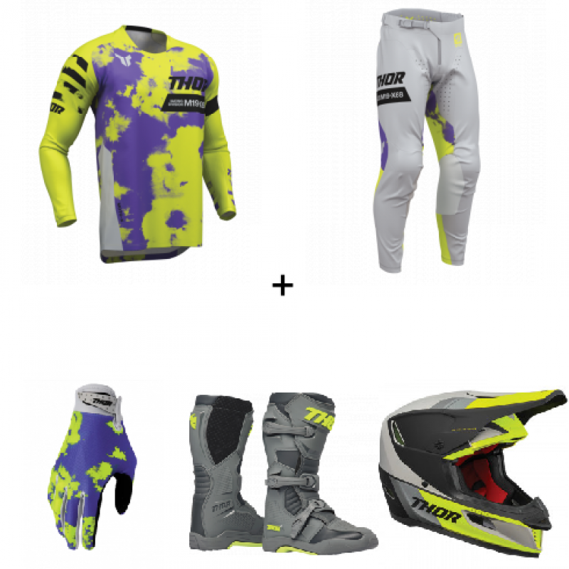 Мотокрос брич THOR LAUNCHMODE BLEACH GRAY/ACID