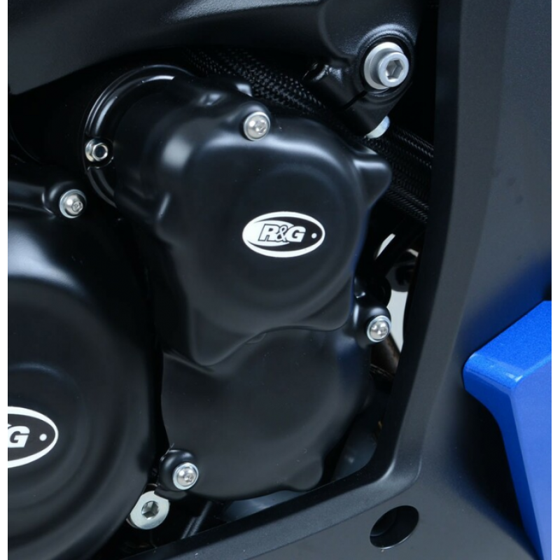 Тези капаци на R&G Racing са изработени от 4-милиметров полипропилен, което осигурява ефективна защита, издръжливост и състезателен вид. Капаците се монтират с болтове върху оригиналния корпус на двигателя. С тънък профил за максимален клиренс, ултралеки и с матово покритие, те предпазват една от най-уязвимите части на двигателя.