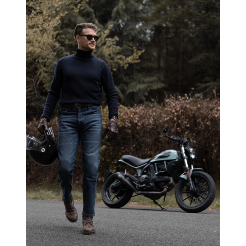 Идеални за каране през цялата година, мото дънките Pando Moto Arnie Slim Blue имат всички качества да се превърнат във вашия единствен и любим чифт мото дънки.