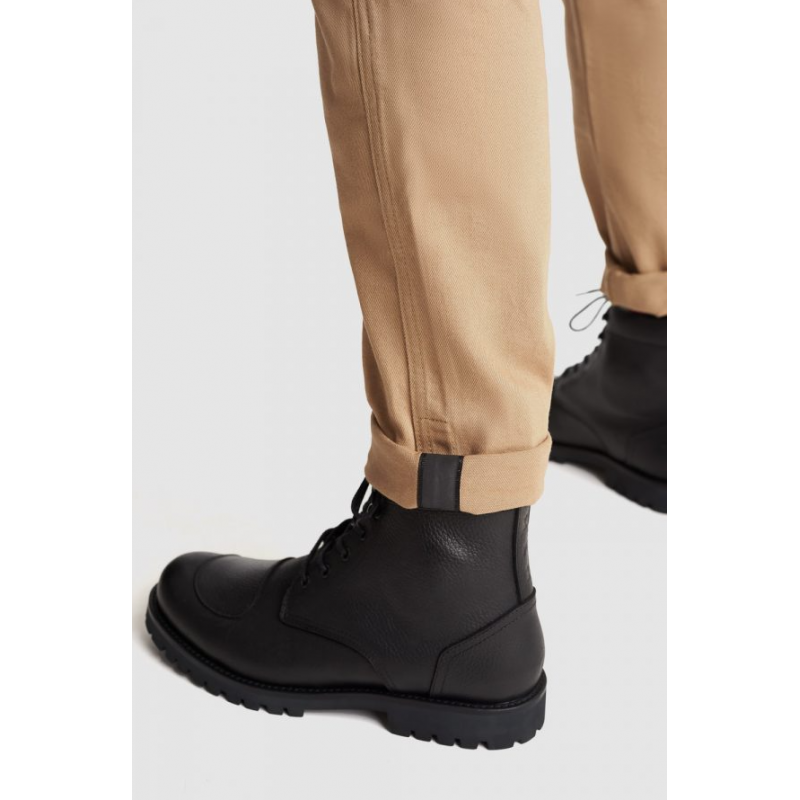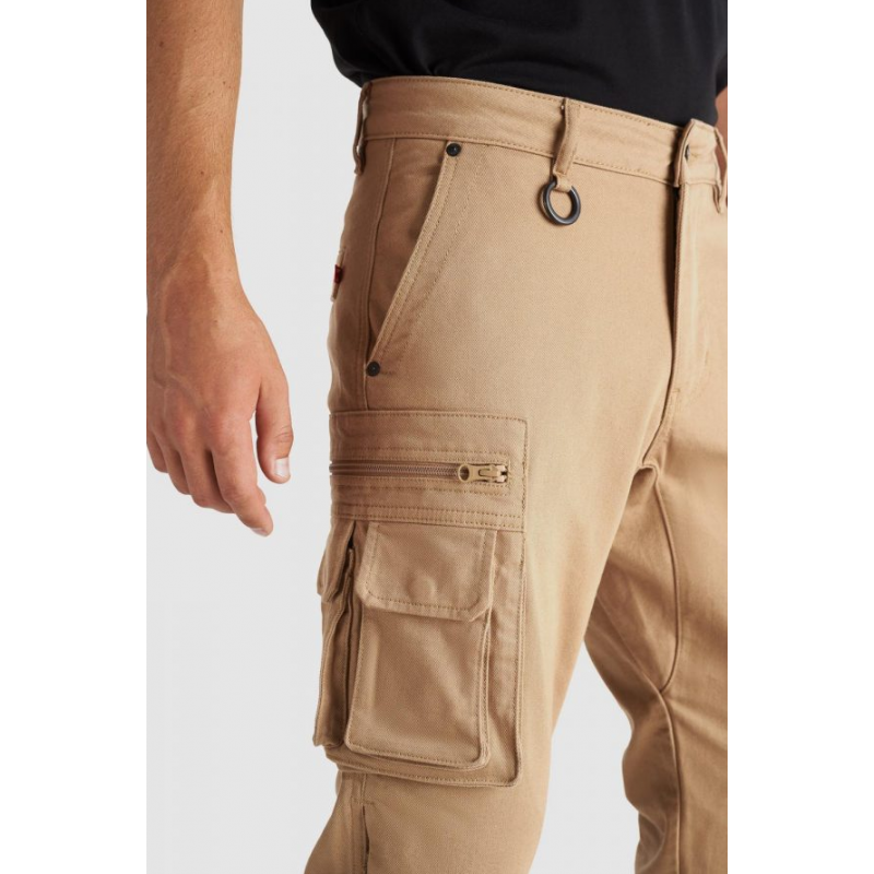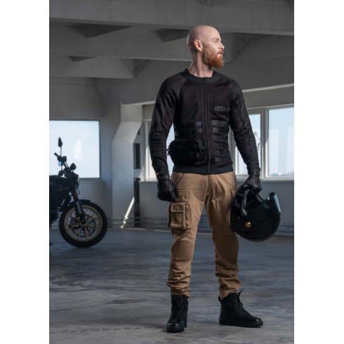 Тези високозащитни панталони за мотоциклетисти са изработени от Cordura, високотехнологичен материал, който комбинира военен клас INVISTA T420 найлон 6,6 щапелни влакна и памук, за да създаде екипировка за мотоциклетисти, която прилича на деним, но е много по-защитна. След като е бил подложен на задълбочени тестове съгласно стандарта EN 17092-3:2020, включително изпитване на пътя със симулирани плъзгания, за да се провери устойчивостта на износване, Desert Cargo Beige предлага защита от ниво AA.