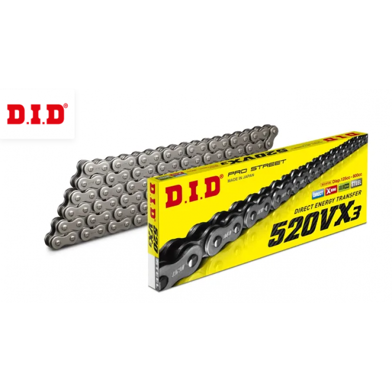 Веригата DID VX3 Series, притежава много добра производителност и издръжливост за вашия мотоциклет.