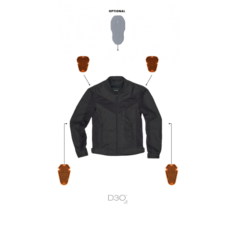 Air Tate Jacket Black е изцяло CE одобрено мото яке с протектори, покриващо ниво на защита A съгласно стандарт EN 17092-4:2020. Оборудвано е с интегрирани D3O® Ghost™ CE Ниво 1 протектори за лакти и рамене, а като опция се предлага и гръбен протектор Quatroflex CE Ниво 2 от Pando Moto.