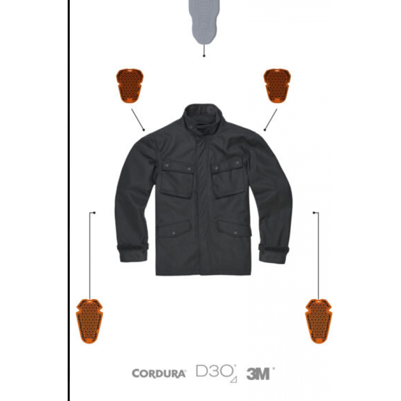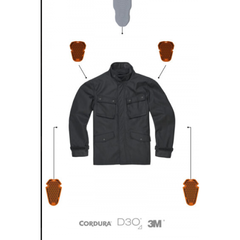M65 WP Jacket Black е изцяло CE одобрено като ниво на защита AA съгласно стандарт EN 17092-3:2020. Якето включва D3O® Ghost™ CE Ниво 1 протектори за лакти и рамене. Благодарение на гъвкавите и тънки протектори, можете да се движите свободно без ограничения. За допълнителна защита има опция за закупуване на лек гръбен протектор Quatroflex CE Ниво 2.