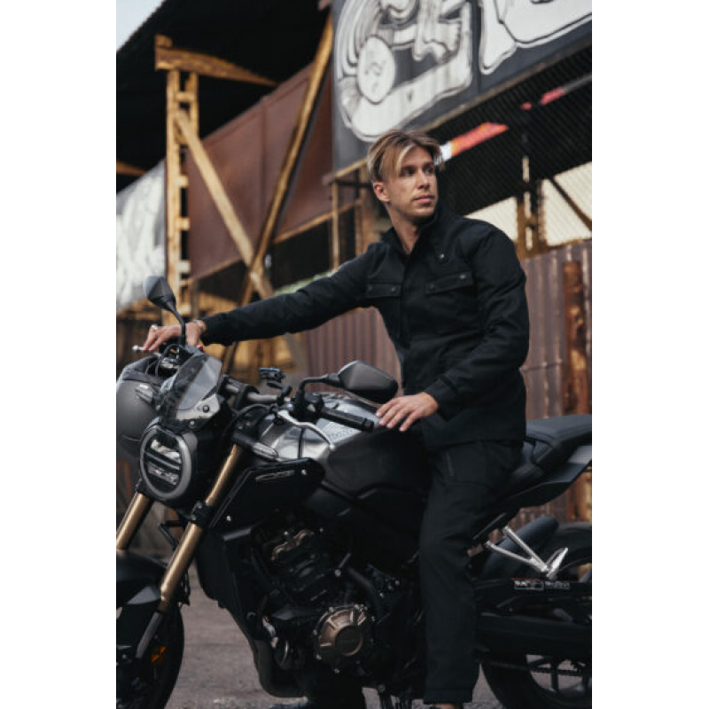 Якето M65 WP Jacket Black е перфектният пример за това как качествените материали и вниманието към детайла могат да създадат мото яке, което е не само функционално, но и стилно. То е напълно водоустойчиво, което го прави идеално за туринг през дъждовни дни – независимо дали се отправяте на работа или на приключение.