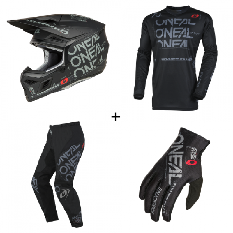 Мотокрос комплект O'NEAL STATIC BLACK/GRAY V.25- 4 части на цена 548,79 лв./280,59€