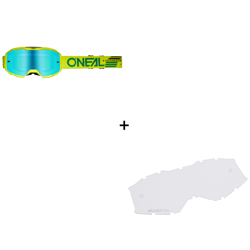 Мотокрос очила O'NEAL B-10 SOLID NEON YELLOW - RADIUM BLUE V.24+Прозрачна плака на цена 63,40€/124,00 лв.