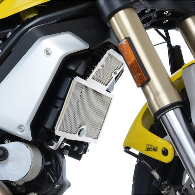 Повредата на мотоциклета не се дължи само на катастрофи – камък, попаднал в радиатора по време на ежедневното каране, може да ви струва също толкова пари и да ви развали деня. Предпазителите за радиатори R&G са изработени от здрава алуминиева мрежа и рамка, които не ограничават потока на охлаждащия въздух, но добавя втори слой защита, предотвратяващ отломките, изхвърлени от другите участници в движението (или дори от собственото ви предно колело), да причинят повреда на скъпите охладителни системи.