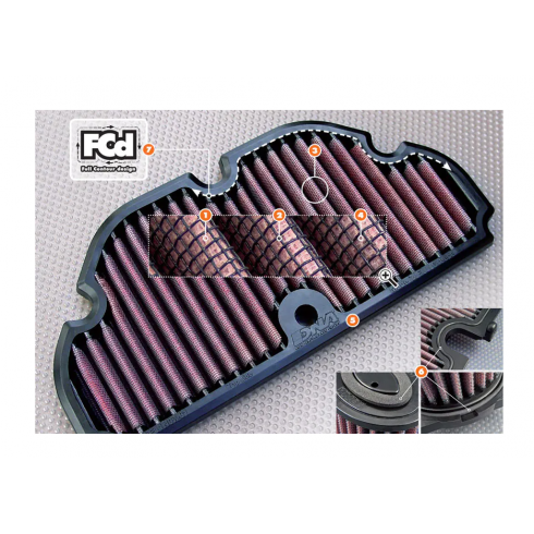 7/ FCd (Full Contour design) - най-малко 20% и до 80% повече площ на филтриране, използвайки DNA FCd технология; Уникален революционен дизайн, иновация от DNA, позволява на нагънатата филтрираща среда да следва точно контура на въздушната кутия, независимо от сложността на формата, като увеличава сериозно въздушния поток. Възползвайки се от пълнaта площ по контура на въздушната кутия, са премахнати „мъртвите точки“, които ограбват мощността. Ако площта е там, защо да не бъде ефективно използвана!