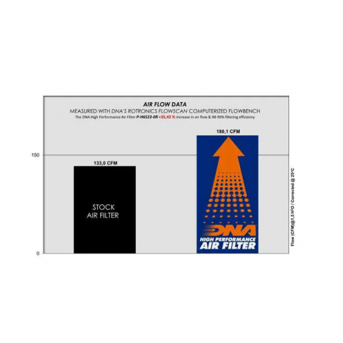 Спортен въздушен филтър DNA за многократна употреба като заместител на оригиналния въздушен филтър е създаден така че да увеличи конските сили и ускорението на мотоциклета като същевременно осигури и отлична филтрация. Филтри DNA се почистват, измиват и омасляват и се използват отново и отново. С форма и дизайн напълно пасваща към оригиналната филтърна кутия, вие имате възможност да увеличите ефективността на вашия мотоциклет изключително лесно.