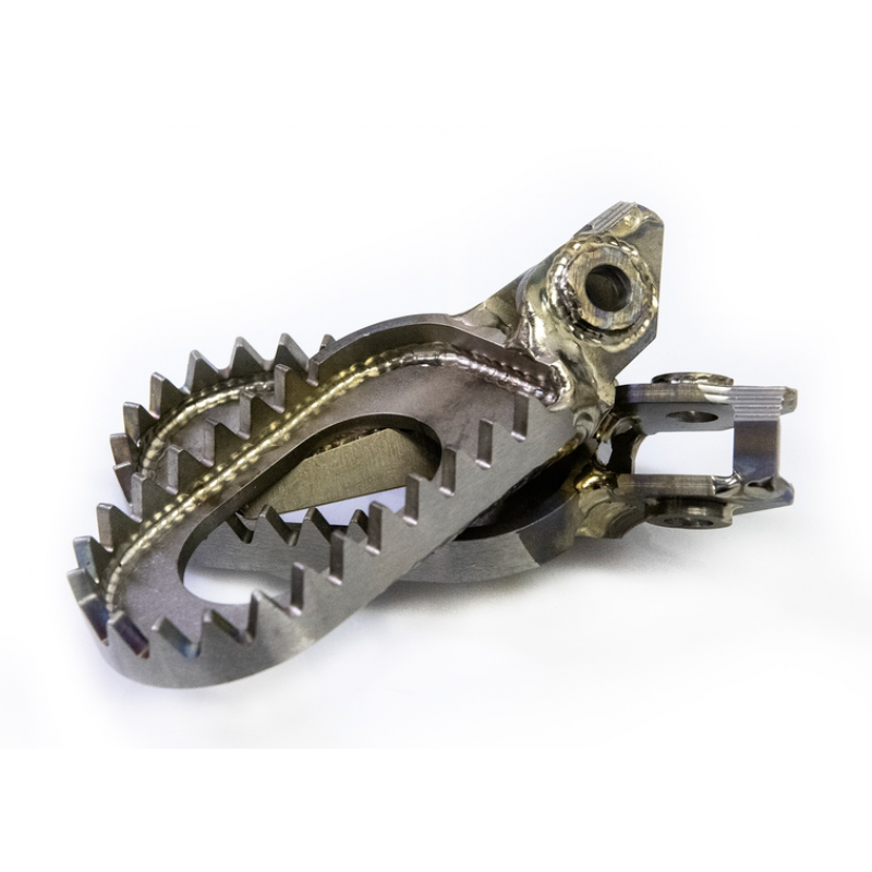 Високото съотношение якост/тегло на титана позволява по-широк профил и по-дебели зъби за оптимално сцепление и намалено износване на обувките. Изработени от аерокосмически клас Ti-6AL-4V титан и заварени ръчно с TIG от висококвалифицирани заварчици, за да се получат здрави заварки без напрежение.