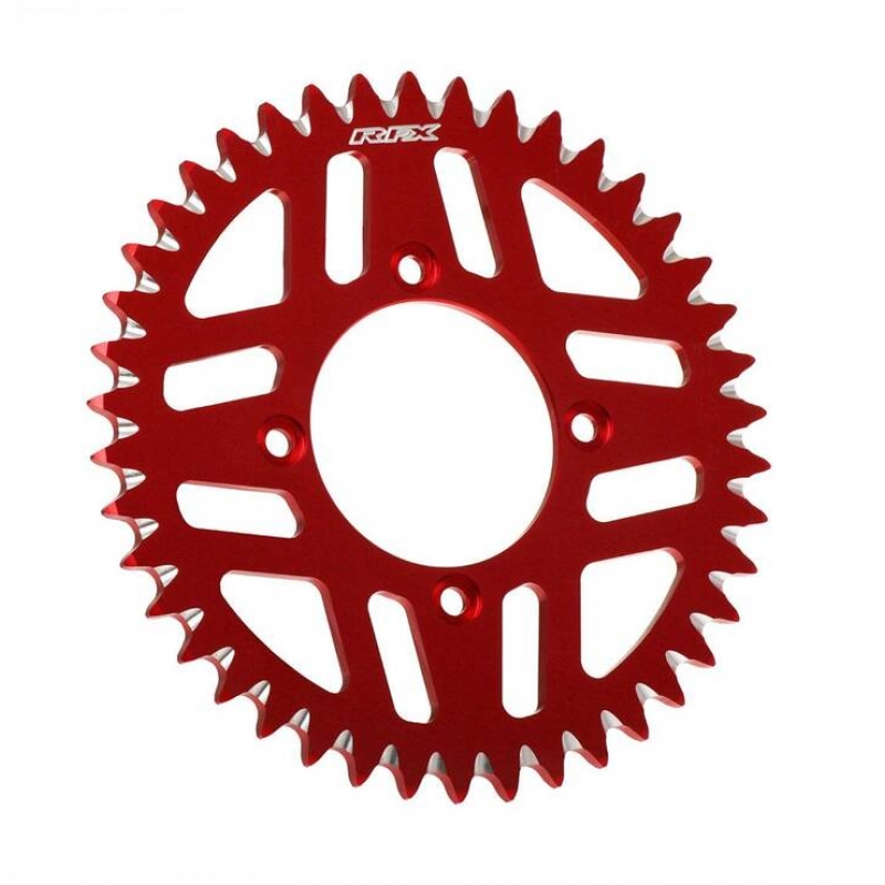 Задните зъбни колела от серията RFX Pro са CNC обработени от аерокосмически алуминий 7075 и имат канали за почистване на кал за по-дълъг живот на веригата и зъбното колело. Зъбните колела RFX са цветово кодирани за марката на велосипеда и се предлагат и в стандартно сребристо за всеки модел велосипед.